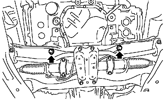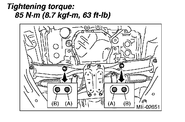 7. Tighten the nuts which install front cushion rubber onto front crossmember.