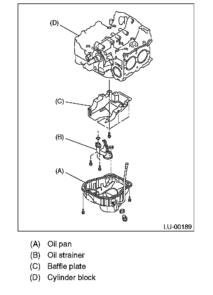 Visually check that the oil pan, oil strainer, oil strainer stay and baffle plate are not damaged.
