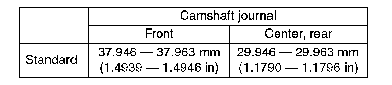 3. Measure the outside diameter of camshaft journal. If the journal diameter is not at specified, check the oil clearance.