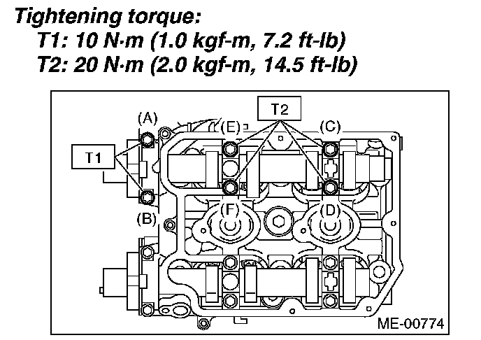 T2: 20 Nm (2.0 kgf-m, 14.5 ft. lbs.)