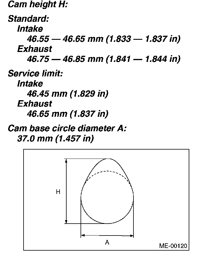 5. Check the cam face condition; remove the minor faults by grinding with oil stone. Measure the cam height H. Replace if it exceeds the limit.