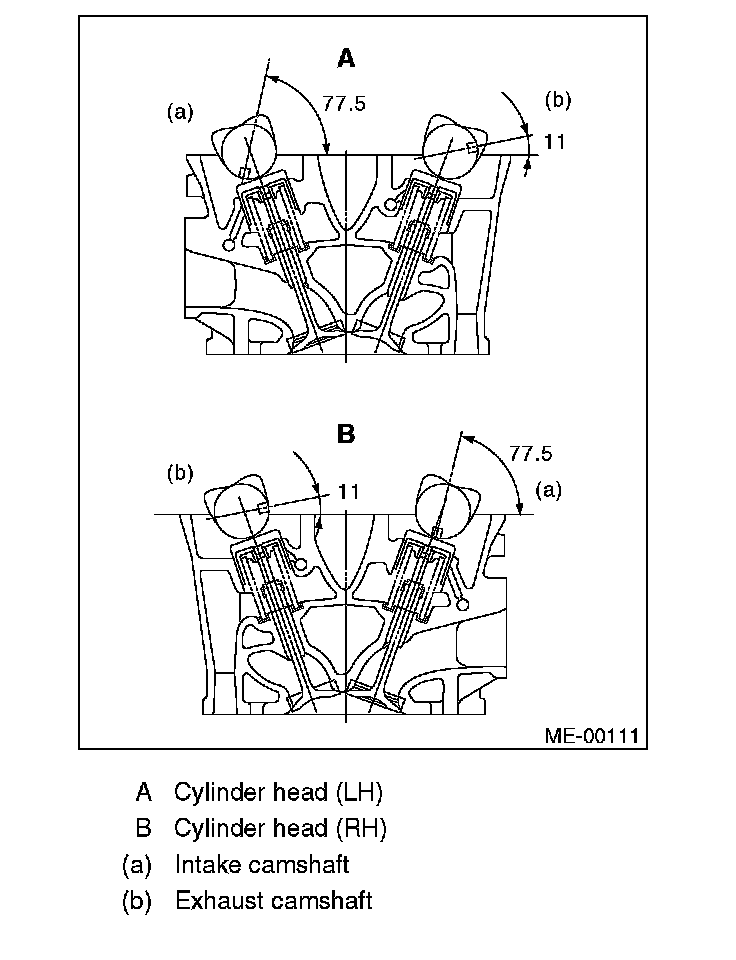 ^ Set the cam shaft to the position shown in the figure. It is necessary to rotate the cam shaft (LH) slightly when installing the timing belt.