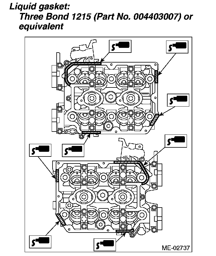 Liquid gasket. Three Bond 1215 (Part No. 004403007) or equivalent