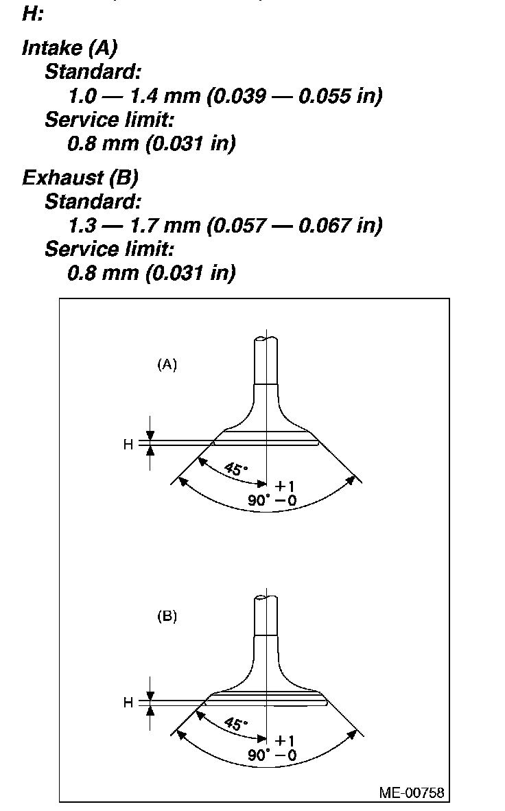 1. Inspect the flange and stem of valve, and replace if damaged, worn, or deformed. If "H" is less than the specified limit, replace with a new valve. H.