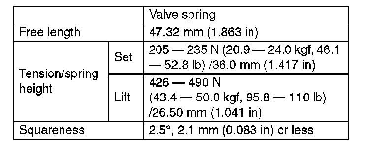 1. Check the valve springs for damage, free length, and spring constant. Replace the valve spring if it is not within standard values presented in the table.
