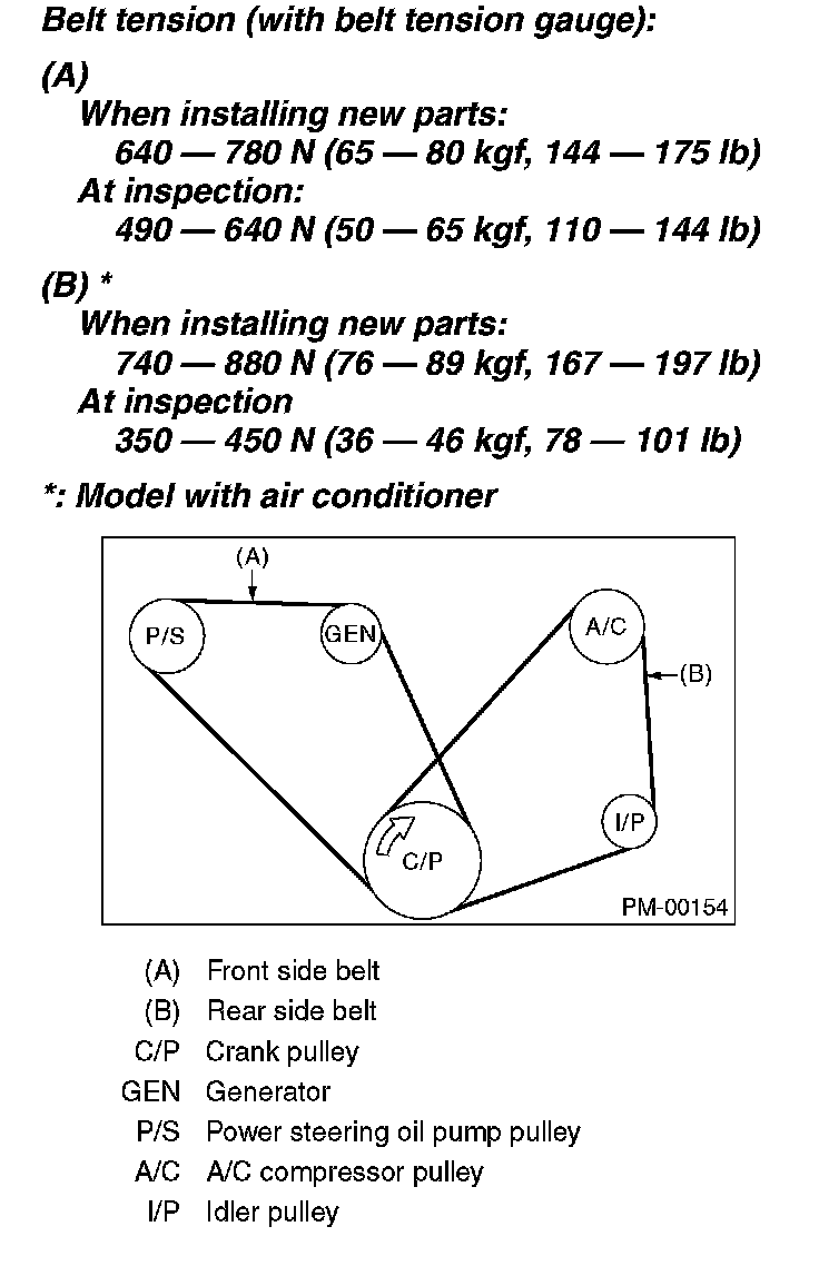 Belt tension (with belt tension gauge):
