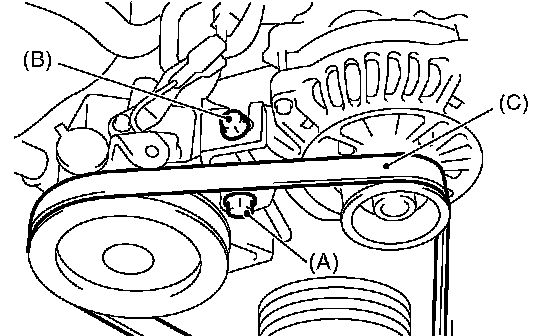 2. Check the drive belt tension and adjust it if necessary by changing generator installing position and/or idler pulley installing position.