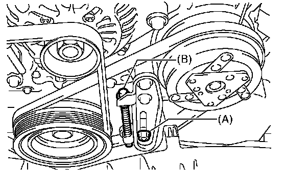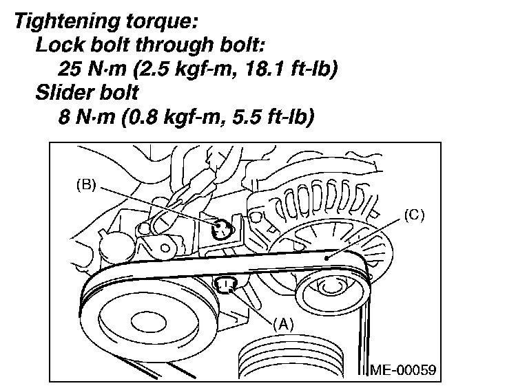 1. Install a belt, and tighten the slider bolt (13) so as to obtain the specified belt tension.