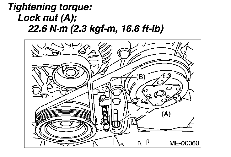 Lock nut (A); 22.6 Nm (2.3 kgf-m, 16.6 ft. lbs.)