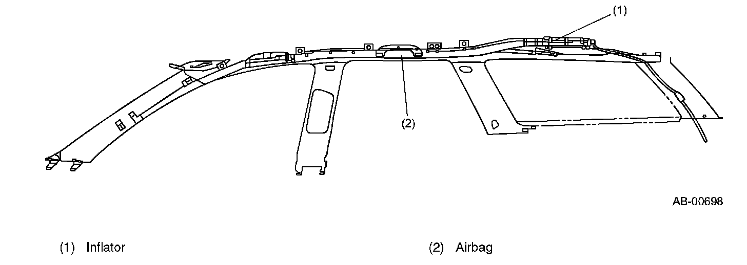 The SRS curtain airbag module cannot be disassembled. The curtain airbag modules are fixed to the vehicle body with a bracket and clips, and consists of an inflator and an airbag.
