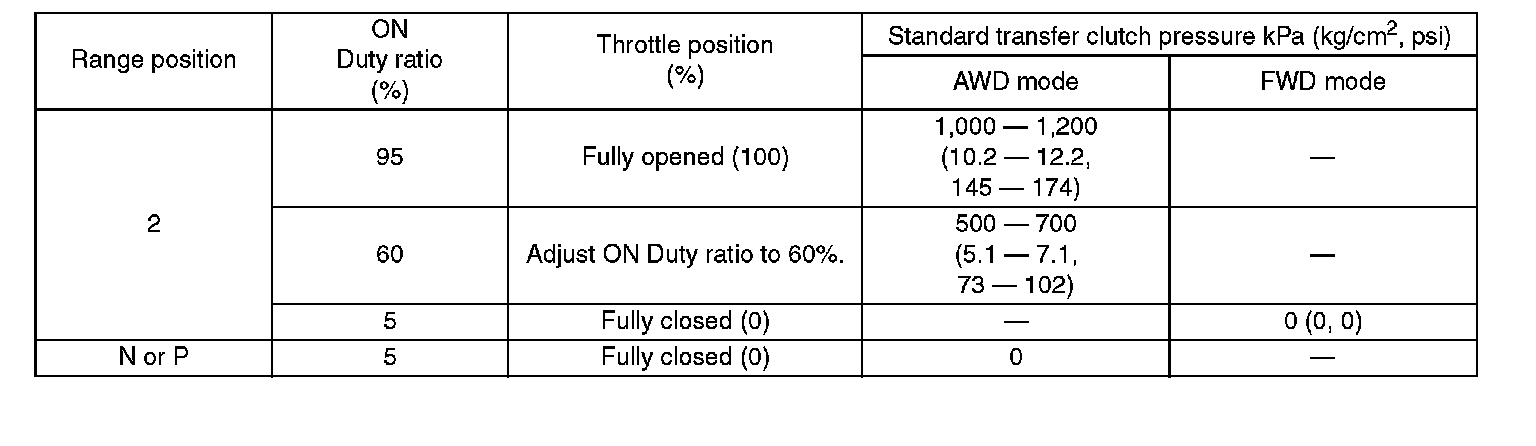 ^ If no oil pressure is produced or if it does not change in AWD mode, the transfer duty solenoid or the control valve body may be malfunctioning.