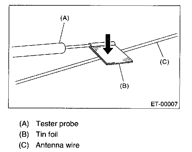 NOTE: When checking the continuity, wind a piece of tin foil around the tip of tester probe and press foil against wire with your finger.