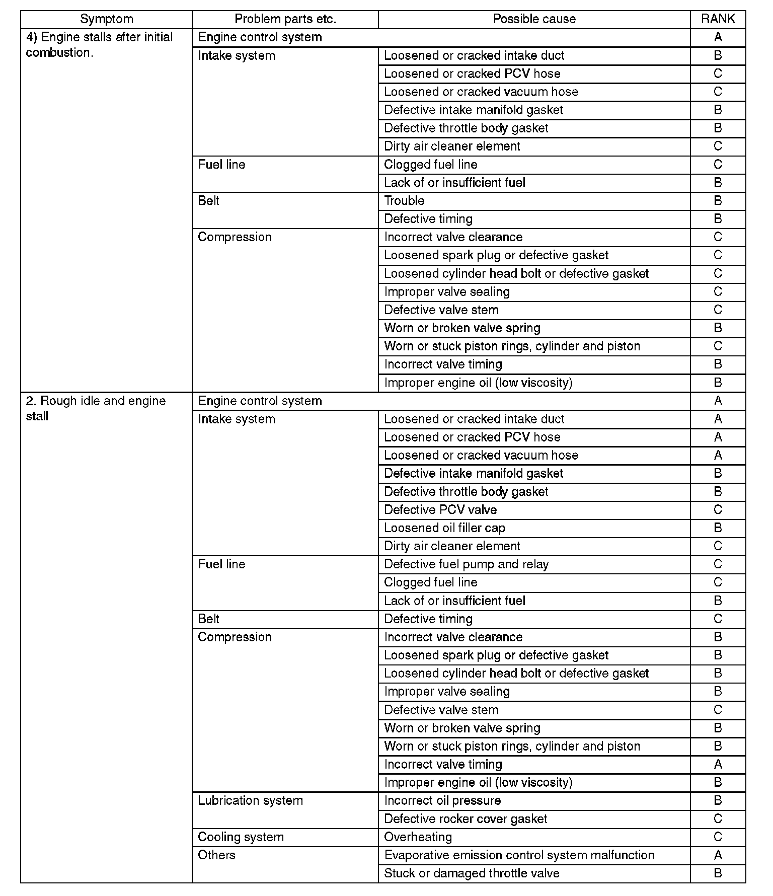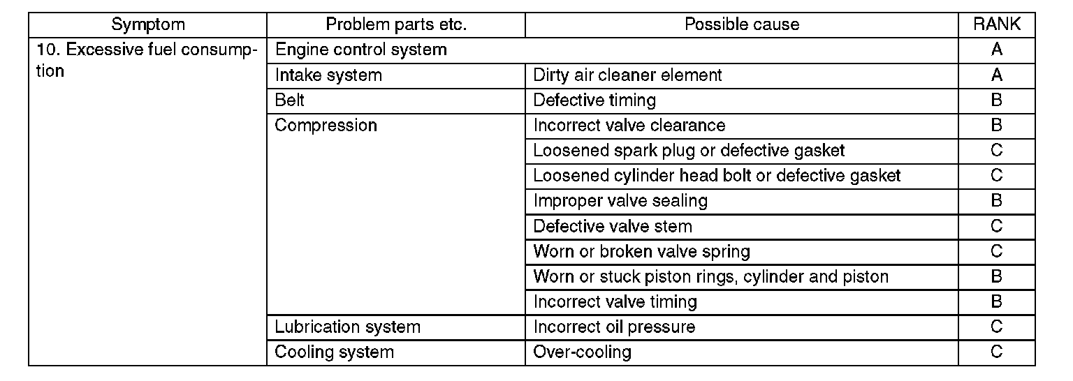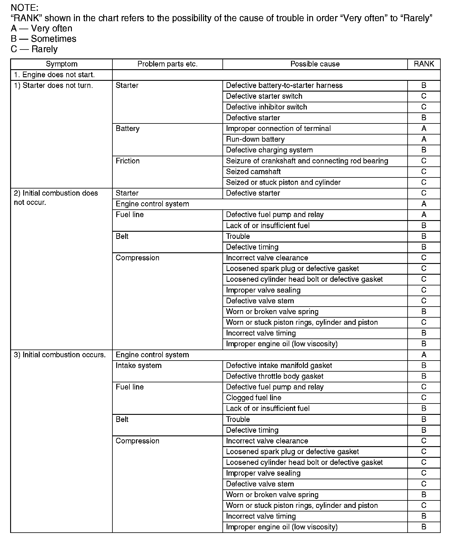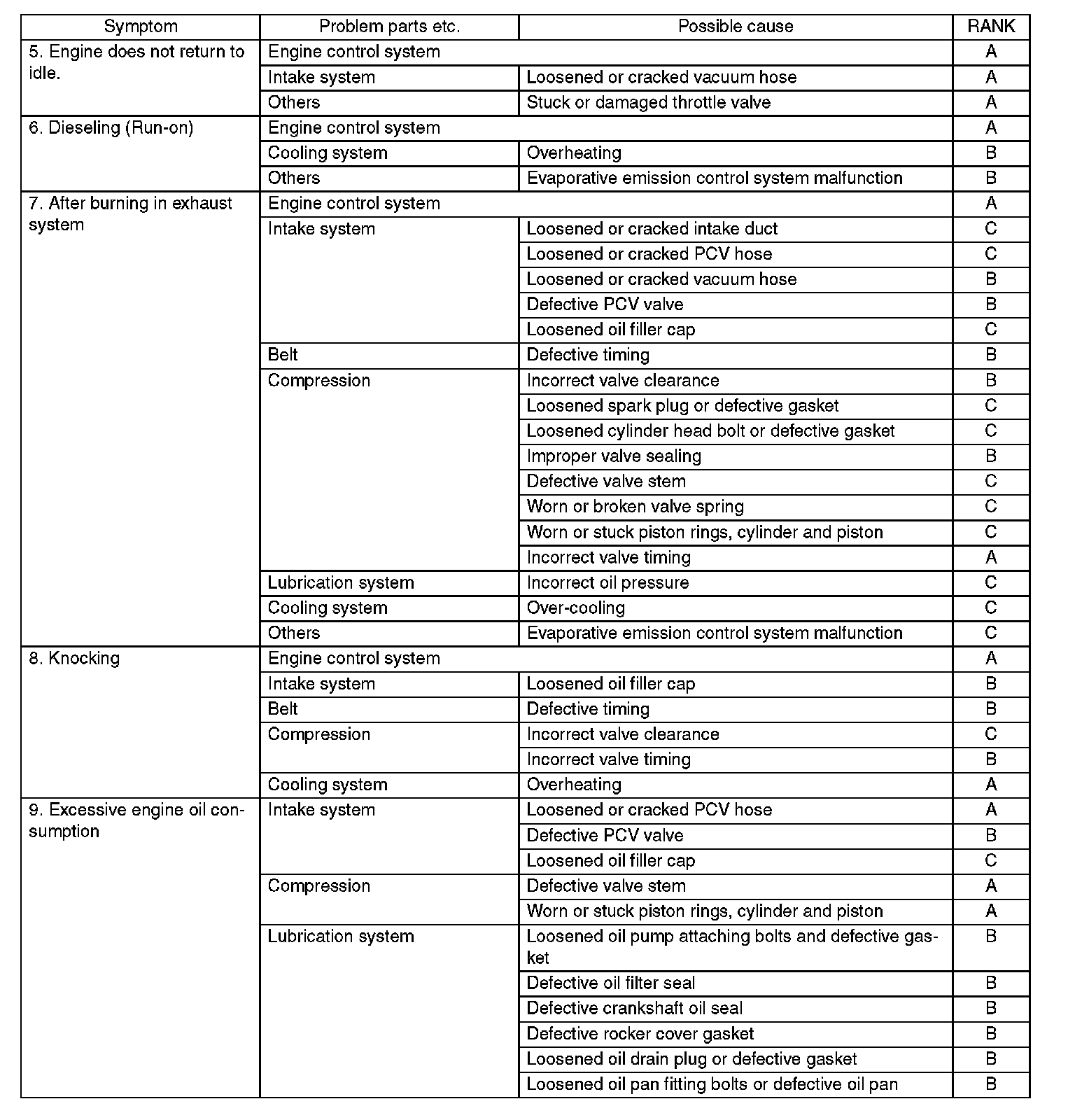 "RANK" shown in the chart refers to the possibility of the cause of trouble in order "Very often" to "Rarely"