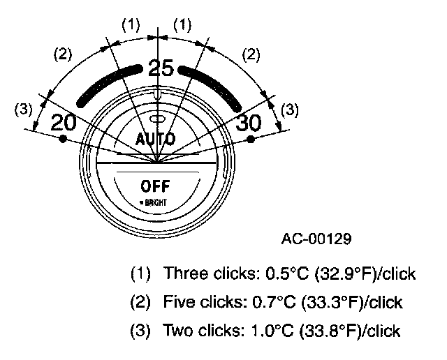 This dial allows adjusting the temperature of air delivered through the ventilators within a range from 18 to 32 °C (65 to 85 °F) in 21 steps.