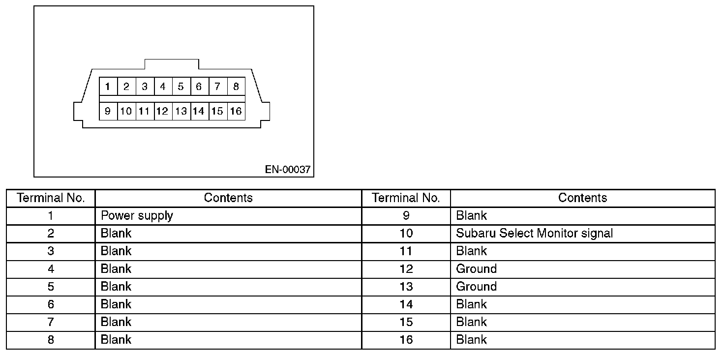 NOTE: This connector is used both for general scan tools and the Subaru Select Monitor.