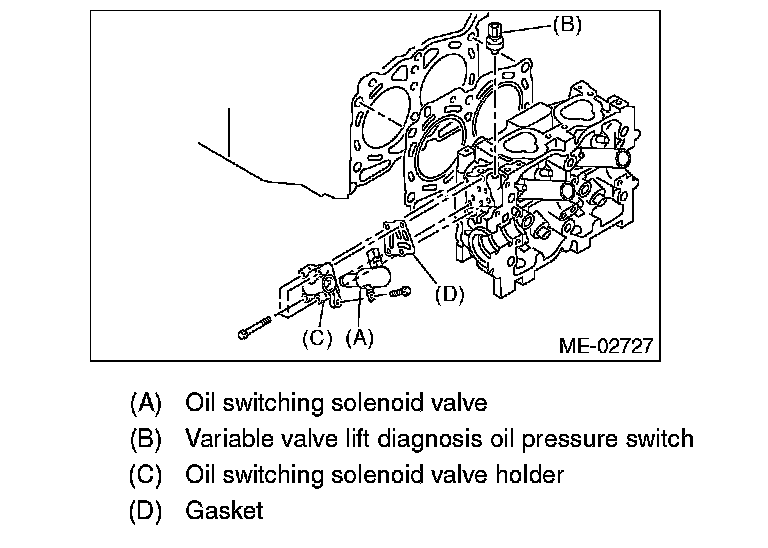 8. Remove the oil switching solenoid valve holder from the cylinder head.