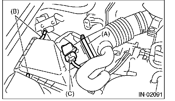 4) Disconnect the connector (C) from mass air flow and intake air temperature sensor.