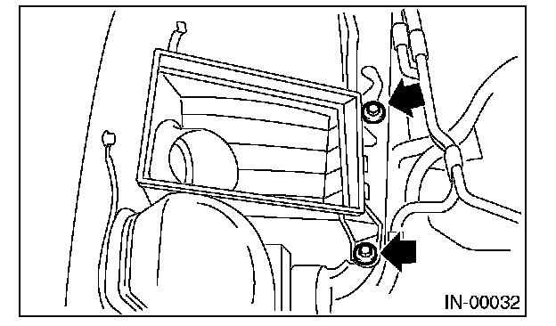 7) Remove the bolts which install air cleaner case to vehicle body.