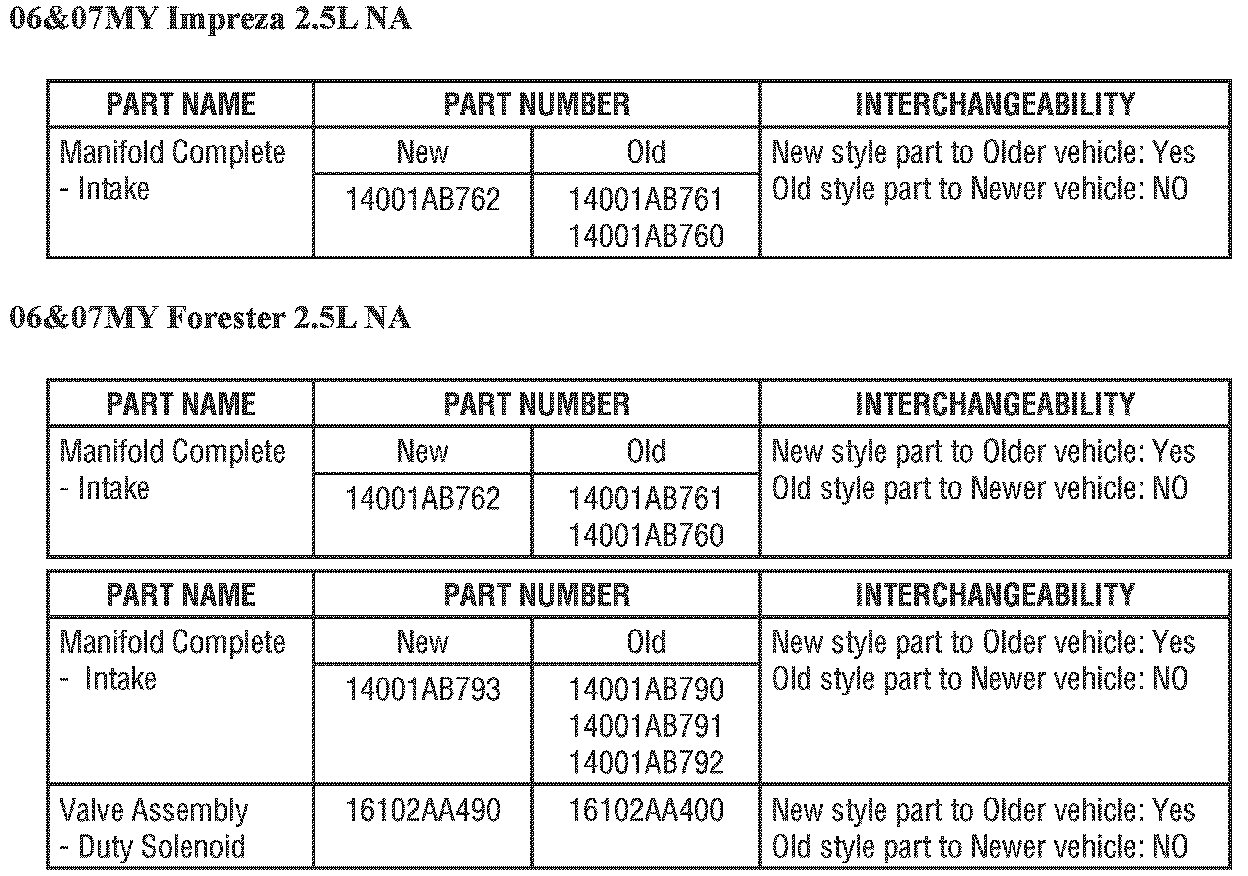 PART INFORMATION AND INTERCHANGEABILITY