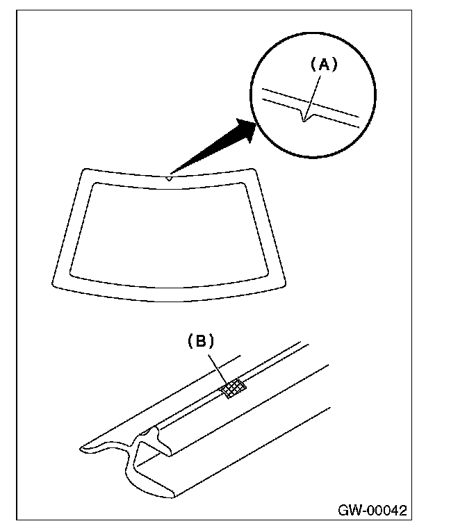 5. Peel away the backing paper of the double-sided tape. Align the molding mark (B) with the notch (A), affix the molding to the entire circumference of the edge of the glass, and press uniformly.