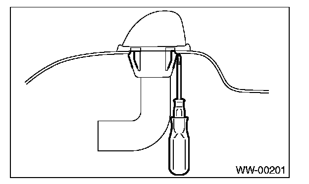3. Push the anchor of the washer nozzle body with a flat tip screwdriver or equivalent, and remove the washer nozzle.