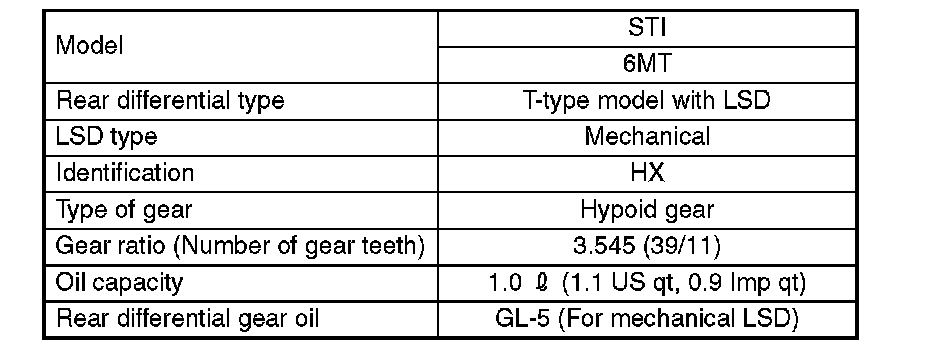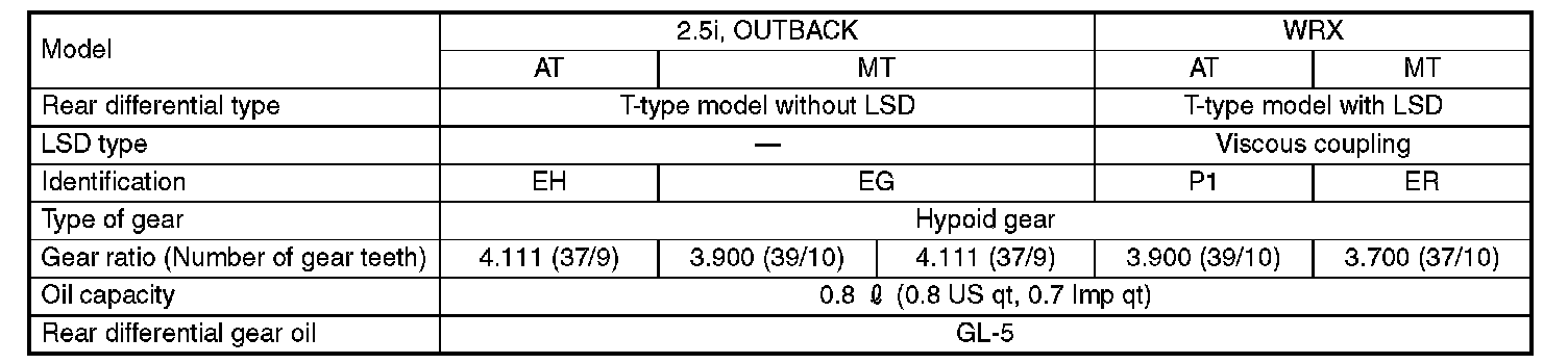 When replacing a rear differential assembly, select the correct one according to the following table.