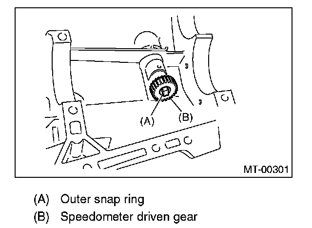 3) Install the speedometer driven gear and snap ring.