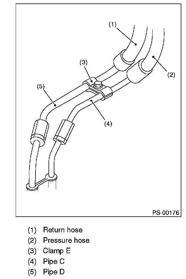 Visually check that the hose between tank and pipe D is free from bending or twisting.