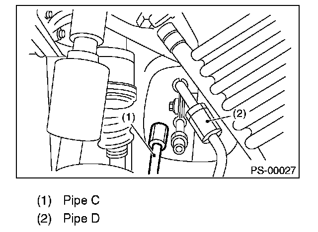 (3) Disconnect the pipe C from oil pump. Disconnect the pipe D from return hose.