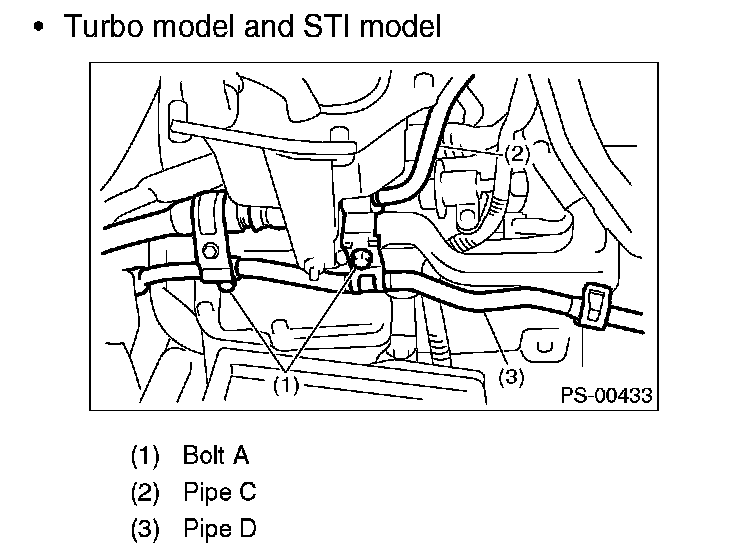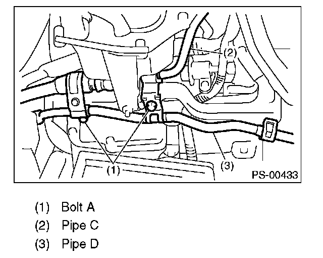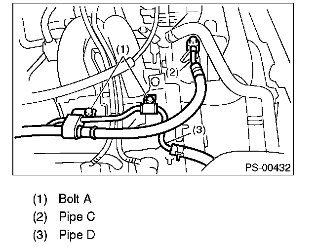 (3) Remove the two bolts fixing pipe C and D. (bolt A)