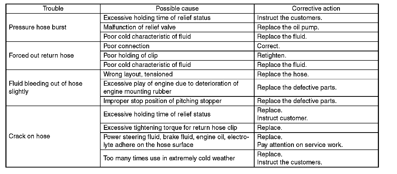 Since the resistances for heat or low temperature brittleness are gradually declining according to time accumulation of hot or cold conditions for the hoses and their service lives are shortening accordingly, it is necessary to perform the careful inspection frequently when the vehicle is used in hot weather areas, cold weather area and a driving condition in which many steering operations are required in short time.