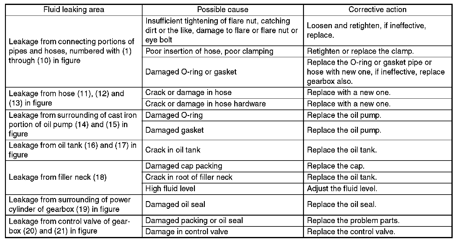It is likely that although one judges fluid leakage, there is actually no leakage. This is because the fluid spilt during the last maintenance was not completely wiped off. Be sure to wipe off spilt fluid thoroughly after maintenance.