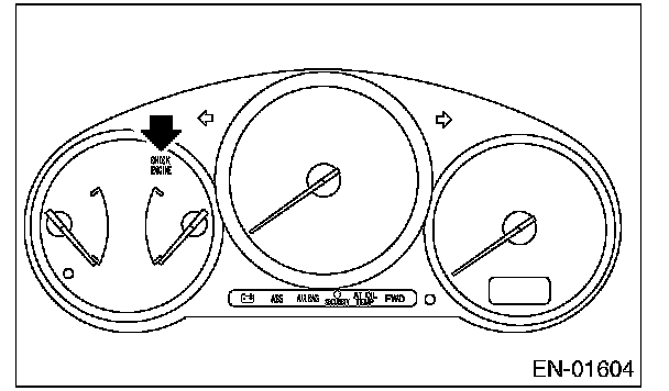 ACTIVATION OF MALFUNCTION INDICATOR LIGHT1. When the ignition switch is turned to ON (engine OFF), the malfunction indicator light in the combination meter illuminates.
