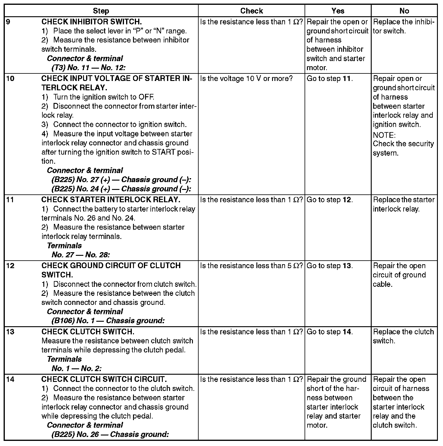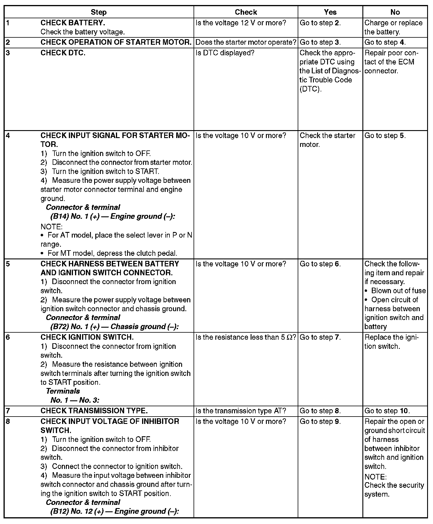 STARTER MOTOR CIRCUITCAUTION: After repairing or replacing the defective part, perform the Clear Memory Mode Clearing Diagnostic Trouble Codes and Inspection Mode. List of Diagnostic Trouble Code (DTC)
