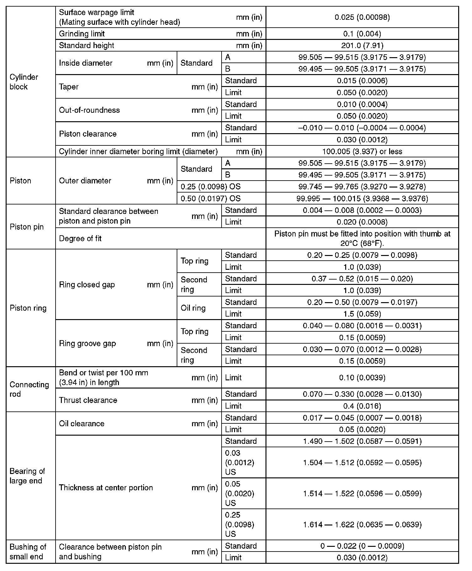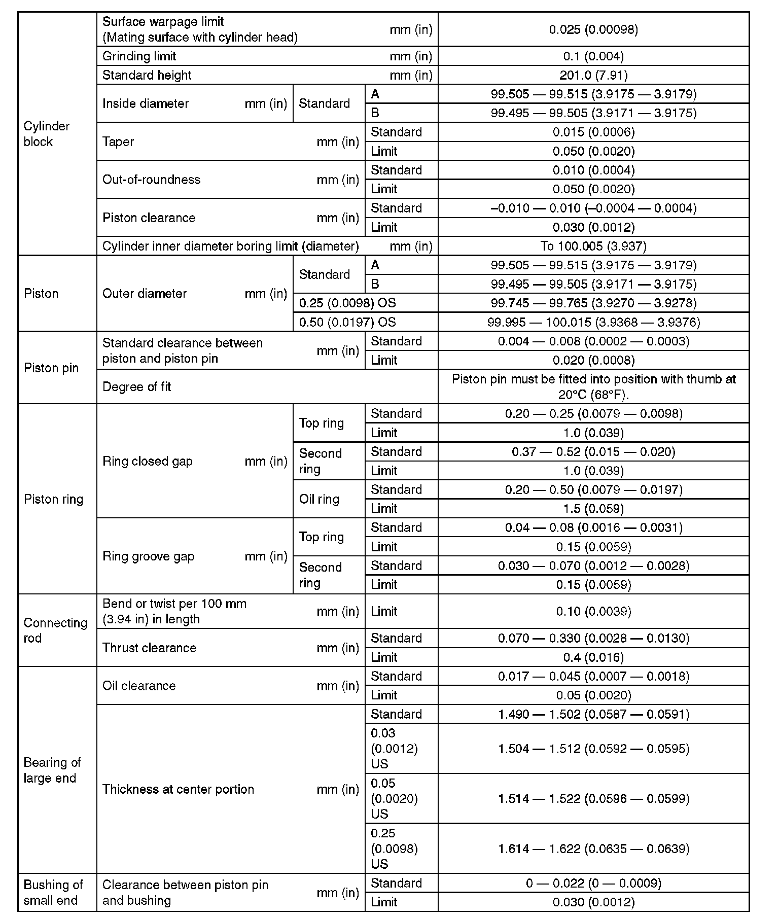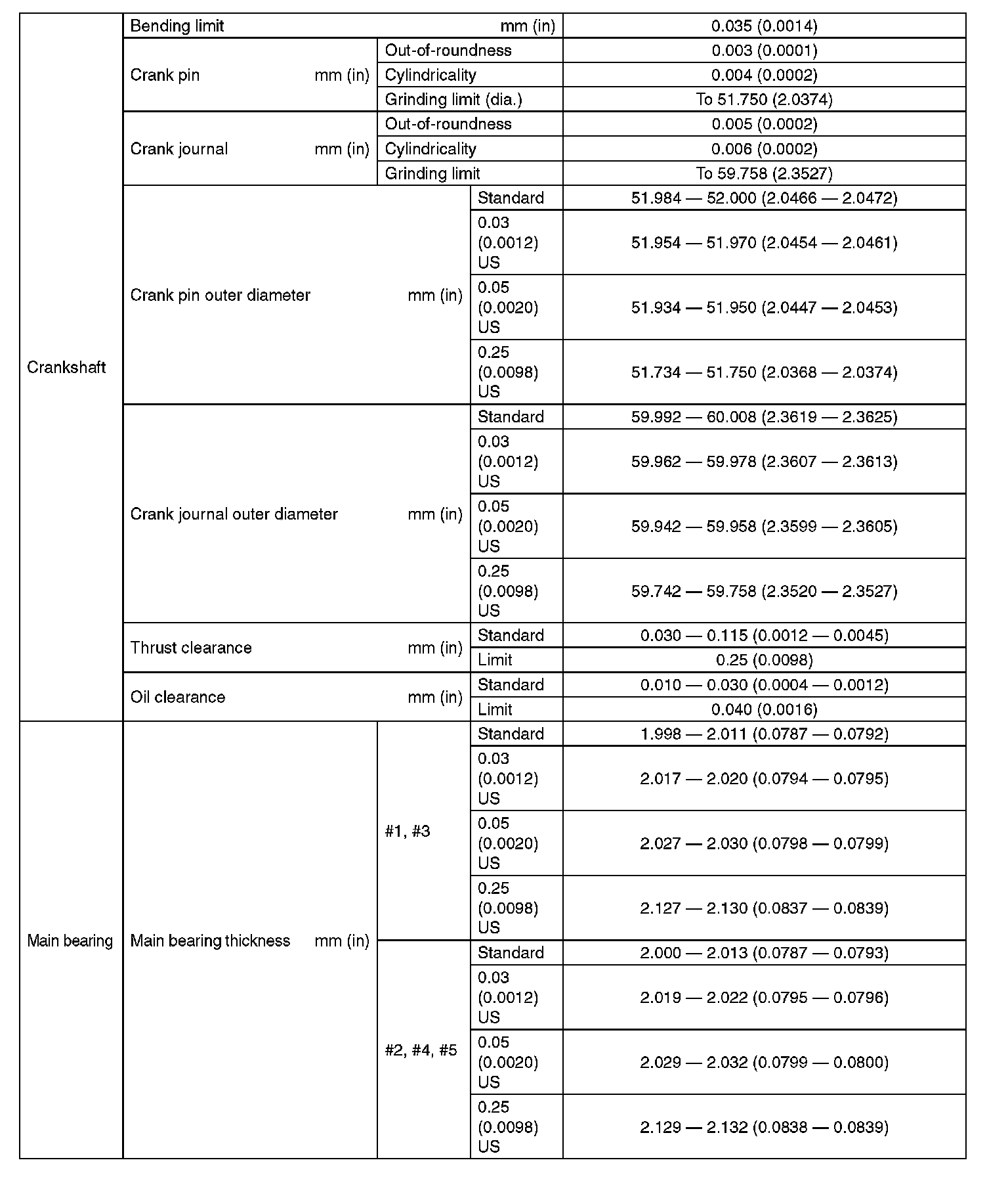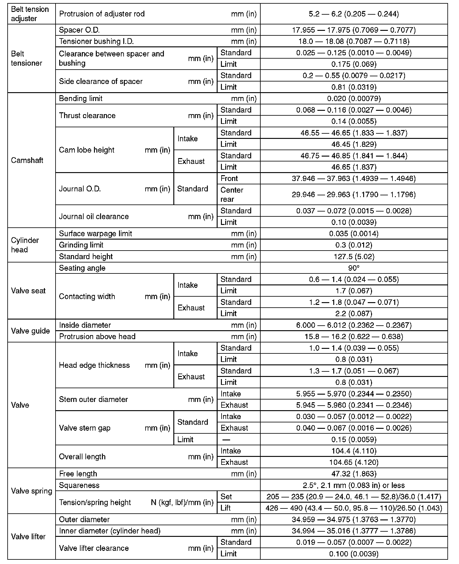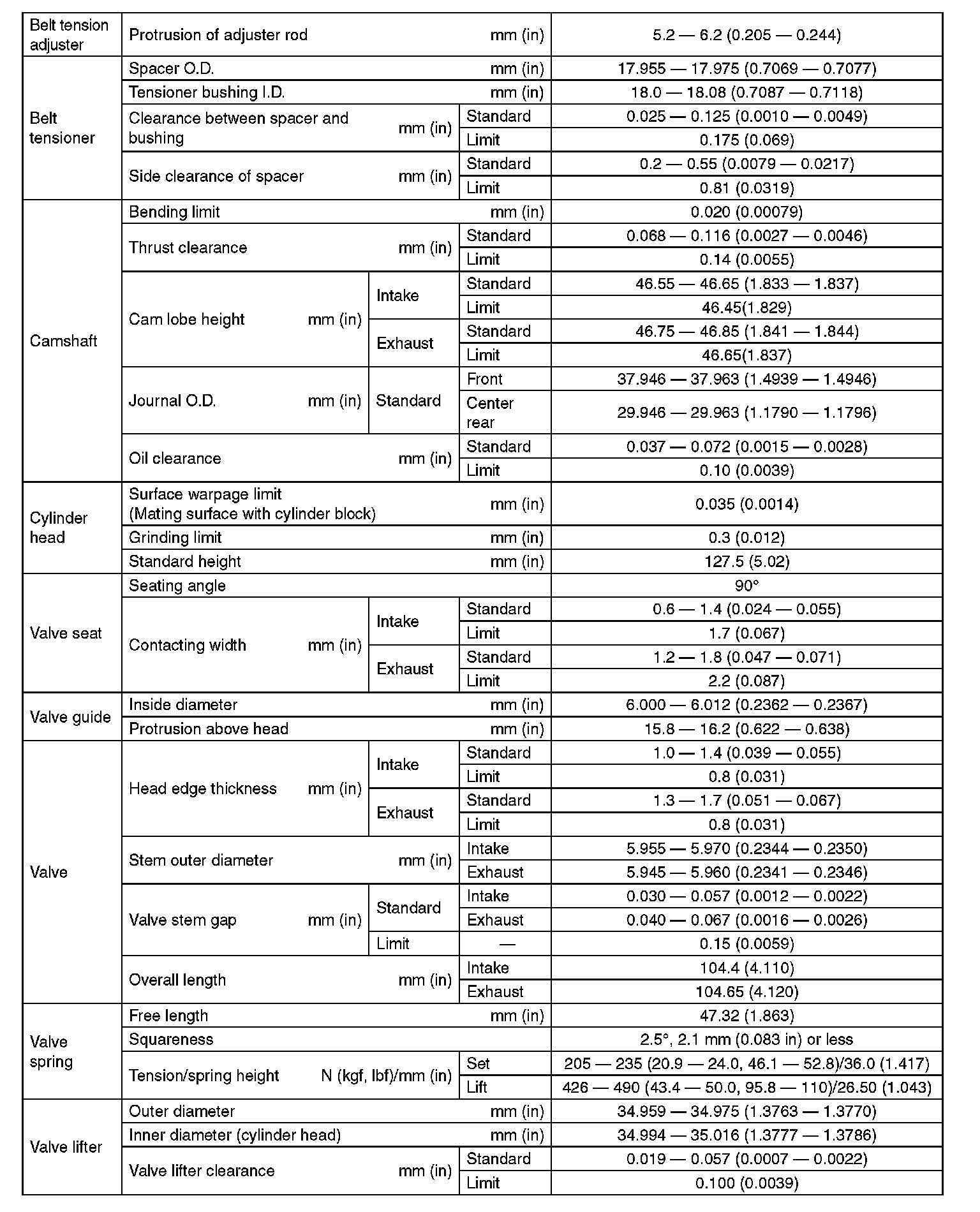 SPECIFICATION (Except For STI Model) (Part 4):