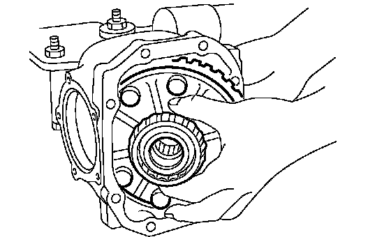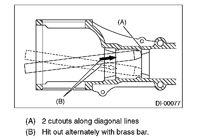 18) When replacing the bearings, hit out the front bearing cup and rear bearing cup in this order out of case by using a brass bar.