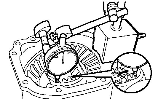 Using a dial gauge, check the backlash of the hypoid driven gear.