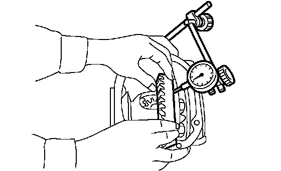 Using a dial gauge, check the backlash of the side gear.