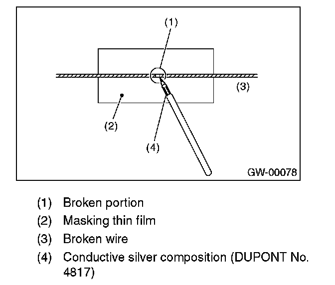 3. Apply conductive silver composition (DUPONT No. 4817) to broken portion.