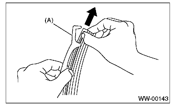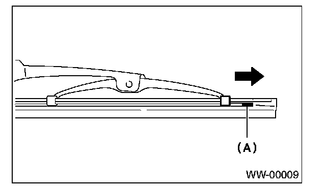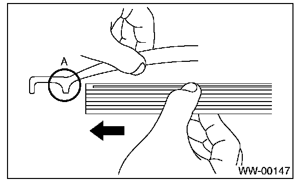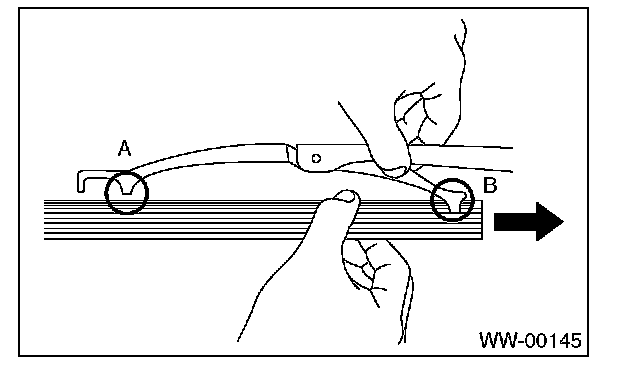 Pull on the side (A) of wiper rubber stopper, and then remove the rubber from blade assembly.