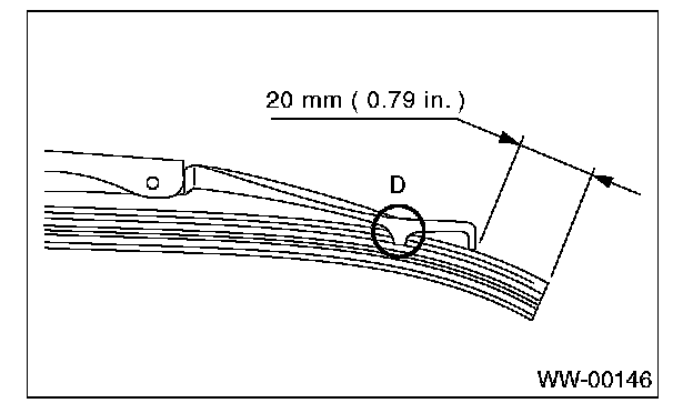 2. Insert the wiper rubber top until it protrudes about 20 mm (0.79 in) from the stopper (D).