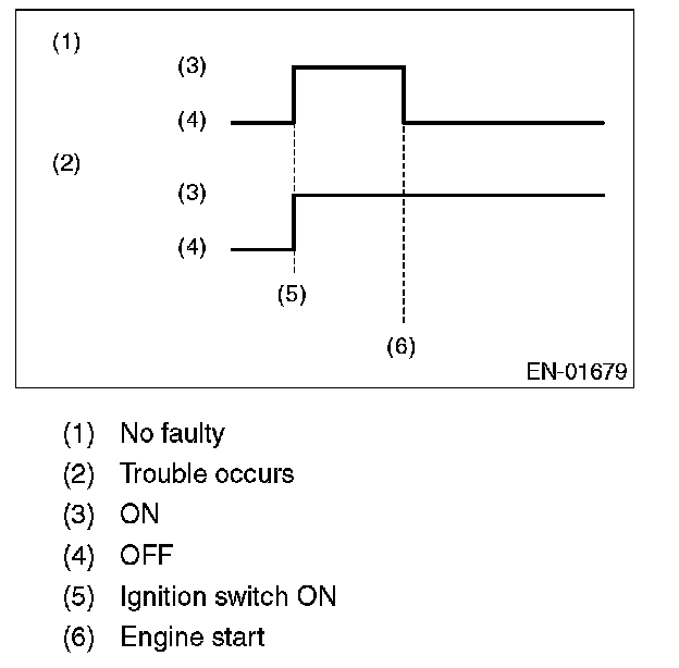 ACTIVATION OF MALFUNCTION INDICATOR LIGHT1. When the ignition switch is turned to ON (engine OFF), the malfunction indicator light in the combination meter illuminates.