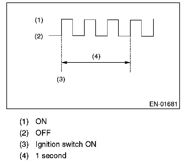 4. When the ignition switch is turned to ON (engine off) or to START with the test mode connector connected, the malfunction indicator light blinks at a cycle of 3 Hz.