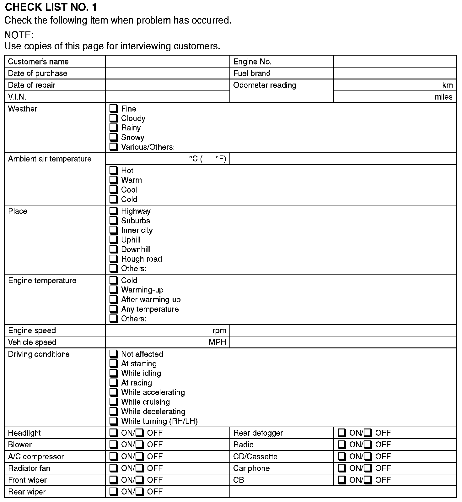 Check List No 1: