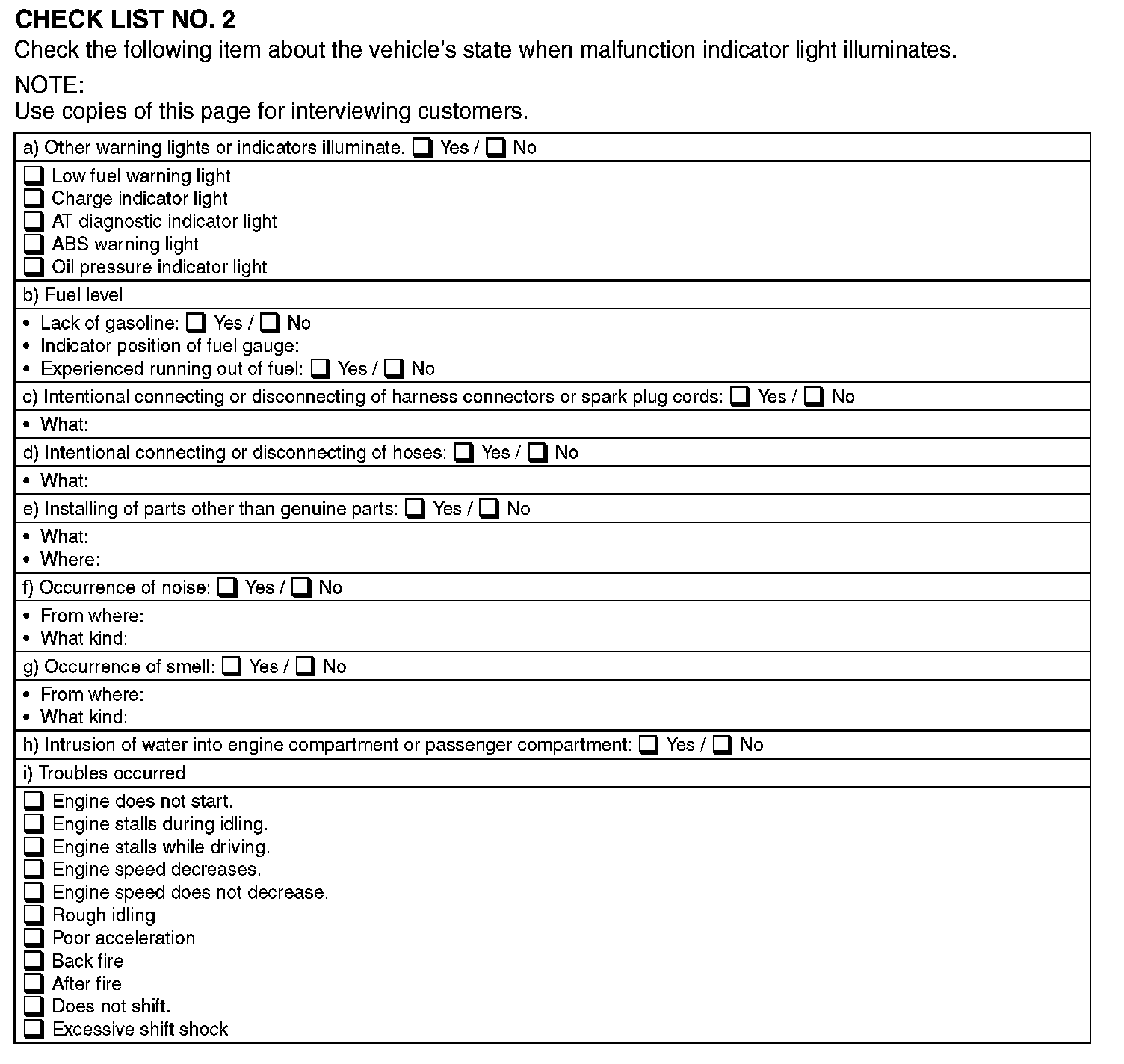 Check List No 2: