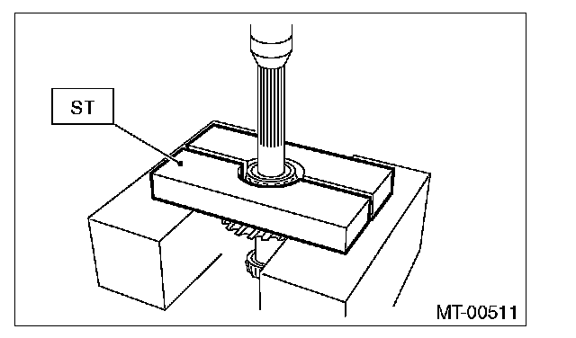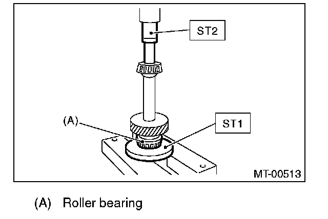 2) Using the ST, install the roller bearing (transmission case side).