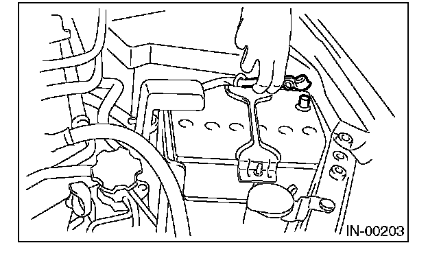 4. Remove the clip fastening the harness and disconnect the rear oxygen (A/F) sensor connector.