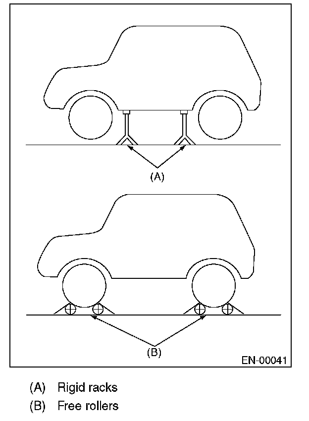 2. Lift-up the vehicle using a garage jack and place it on rigid racks, or drive the vehicle onto free rollers.