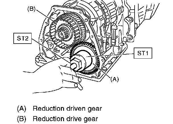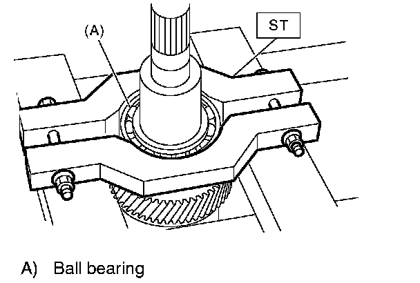 2. Remove the ball bearing from reduction driven gear using ST.