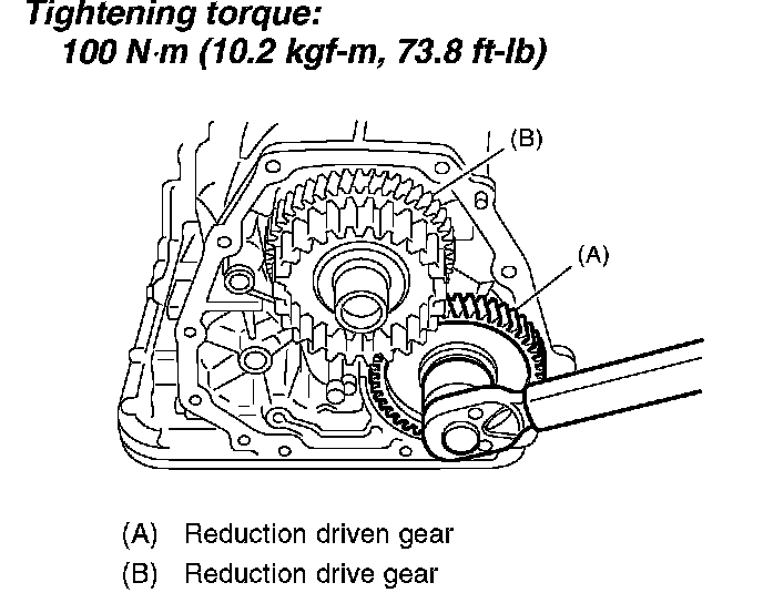 2. Using a plastic hammer, install the reduction driven gear assembly and new washer, and tighten new drive pinion lock nut.